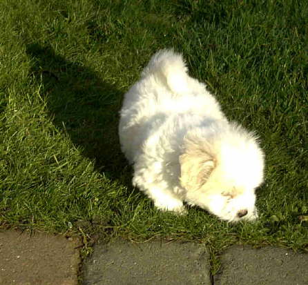 ganz wach in der Herbstsonne im Garten.