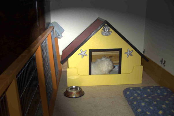 Coco hält die Neugeborenen warm und verlässt dasWurfhäuschen nurkurz zum Fressen undsich Lösen.