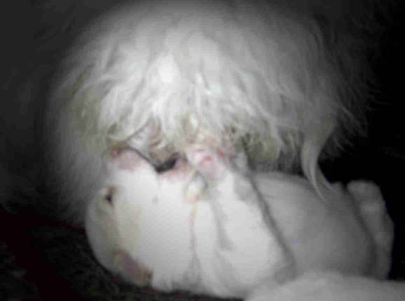 Immer wieder lecktCoco die Kleinenmit ihrer großen Zungeübers Gesicht. Auch schon mal ins kleine Mäulchen!