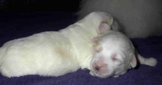 hier sehen wir bei Alina am 18.10.02 das erste Pigment an der Nase.Eine durchgehend schwarze Pigmentierung der Nase, der Lippen und der Augen gehören zum Rasse-standard.